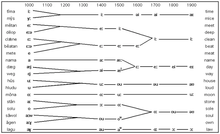 Трансформация гласных от древнеанглийского к современному английскому (1000—1900 годы)