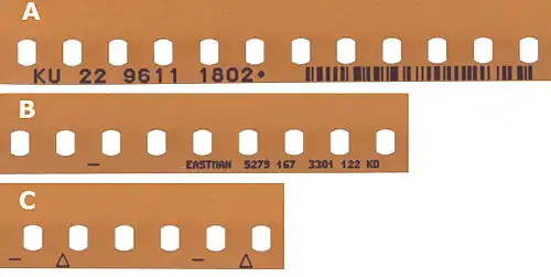- ↑ На 16-мм киноплёнках точка печатается над первой группой символов номера