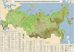 По данным GIS-Lab (неформального сообщества специалистов в области ГИС и ДЗЗ), актуальным на 2.09.2011 г., на территории Российской Федерации зарегистрировано 214 ООПТ федерального подчинения, из них 102 объекта — государственные заповедники, 43 — государственные национальные парки, 69 — федеральные заказники[20].