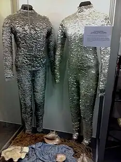 Для Коренева было создано 2 костюма Ихтиандра. В одном он снимался в подводных сценах, другой надевал для надводных сцен на суше. Для костюма Ихтиандра требовалась ткань, которая была бы достаточно плотной и не растягивалась в воде. После долгих поисков остановились на той, из которой изготовляли плотные женские колготки. Для изготовления чешуек использовали старую белую киноплёнку. Всего было вырублено 10 000 штук, которых хватило на 4 костюма. Они были покрашены водостойкой перламутровой краской и вручную поодиночке нашиты на комбинезоны[6][13].