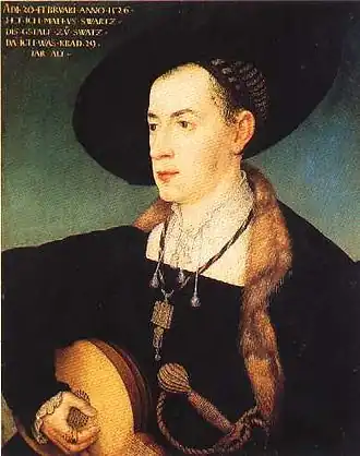 Маттеус Шварц (Matthäus Schwarz; 19 февраля 1497 — ок. 1574) — главный бухгалтер аугсбургского торгового дома Фуггеров в период его расцвета. Известен в истории моды как заказчик рукописного иллюстрированного сборника Klaidungsbüchlein, или Trachtenbuch («книга одежд») — своего рода каталога костюмов, которые он носил в период между 1520 и 1560 годами. В научно-популярных источниках сочинение Шварца именуется первым в мире изданием о моде[5].