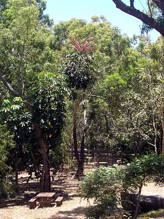 Цветки выделяют большое количество нектара, привлекающего птиц, питающихся медом, которые затем разносят семена. Плоды употребляют в пищу многие птицы и животные, в том числе мускусная кенгуровая крыса, красноногий филандер и очковая летучая лисица. Листья являются излюбленной пищей кенгуру Беннетта.