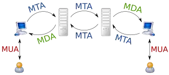 - MDA (англ. mail delivery agent — агент доставки почты) — отвечает за доставку почты конечному пользователю.