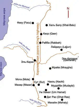 10. Towns and Tourist Sites in Jordan — The Kings' Highway, Kerak, Wadi Mujib and Dana. Дата обращения: 23 сентября 2008. Архивировано из оригинала 20 сентября 2008 года.
