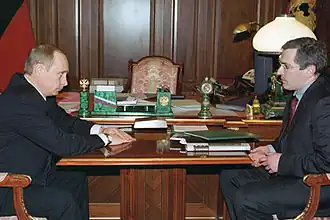 В апреле 2003 года «ЮКОС» объявил о слиянии с компанией «Сибнефть», на тот момент контролировавшейся Романом Абрамовичем. Велись переговоры о продаже блокирующего пакета акций объединённой компании с американскими ChevronTexaco и ExxonMobil. По словам Леонида Невзлина (одного из руководителей и совладельцев «ЮКОСа»), Ходорковский был уверен, что руководство страны одобрит эту рекордную сделку, но «Путина убедили, что Ходорковский его обманывает»[23].
