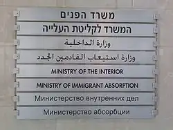 В 1999 году Верховный суд Израиля постановил, что английский, арабский и иврит были унаследованы Израилем в качестве официальных языков, но английский язык был исключён в соответствии с Законом о праве и управлении от 1948 года[11]. Закон гласил: