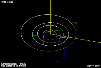 (1566) Ика́р (др.-греч. Ἴκαρος) — небольшой околоземный астероид из группы аполлонов, который характеризуется крайне вытянутой орбитой. Он был открыт 27 июня 1949 года немецким астрономом Вальтером Бааде в Паломарской обсерватории США и назван в честь Икара, персонажа древнегреческой мифологии, известного своей необычной смертью[2].