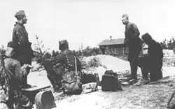 Воины 72-го пограничного отряда под руководством лейтенанта Клёванного готовятся к отражению врага. д. Оланга. Карельский фронт. 1941 г. Фото: Беззубенко П.В.