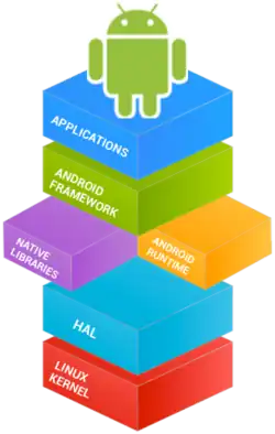 Приложения под операционную систему Android являются программами в нестандартном байт-коде для виртуальной машины Dalvik, для них был разработан формат установочных пакетов .APK. Для работы над приложениями доступно множество библиотек: Bionic (библиотека стандартных функций, несовместимая с glibc); мультимедийные библиотеки на базе PacketVideo OpenCORE (поддерживают такие форматы, как MPEG-4, H.264, MP3, AAC, AMR, JPEG и PNG); SGL (движок двухмерной графики); OpenGL ES 1.0 ES 2.0 (движок трёхмерной графики); Surface Manager (обеспечивает для приложений доступ к 2D/3D); WebKit (готовый движок для веб-браузера; обрабатывает HTML, JavaScript); FreeType (движок обработки шрифтов); SQLite (легковесная СУБД, доступная для всех приложений); SSL (протокол, обеспечивающий безопасную передачу данных по сети). По сравнению с обычными приложениями Linux, приложения Android подчиняются дополнительным правилам[77]: Content Providers — обмен данными между приложениями; Resource Manager — доступ к таким ресурсам, как файлы XML, PNG, JPEG; Notification Manager — доступ к строке состояния; Activity Manager — управление активными приложениями.