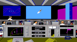 • Подготовка корабля, выход на орбиту Земли с помощью ракеты «Сатурн IV-B» и полёт к Луне. Во время подготовки игрок с помощью данных телеметрии проверяет подсистемы ракеты (двигатели, электронику и др.). После проверки даётся команда начала обратного отсчёта (с 15 секунд). С этого момента и до выхода на орбиту Земли игровой процесс состоит в выполнении штатных действий в заданные моменты времени и в стабилизации гироскопа. Первое представляет собой ряд событий (зажигание двигателей ступеней, отделение системы аварийного спасения (САС) и др.), и для каждого шага игроку нужно подать команду точно вовремя. Отклонение от идеального значения приводит к изменению курса ракеты, а сами отклонения суммируются. Если сумма превышает по модулю 143 единицы, то ракета не выходит на орбиту Земли. Параллельно с этим игрок должен следить за состоянием гироскопа, представленного в игре в виде двух столбцов, самопроизвольно меняющих свою высоту. Игрок может нажатием кнопки либо поднять на некоторое значение левый столбец и при этом опустить правый, либо поднять правый и опустить левый. Слишком высокое или слишком низкое значение любого из столбцов приводит к аварийному завершению полёта. После выхода на орбиту Земли игрок с помощью бортового компьютера проверяет состояние корабля. Если не было серьёзных повреждений, а топлива достаточно для дальнейшего полёта, то корабль выполняет манёвр вывода на траекторию полёта к Луне[4][7][8].