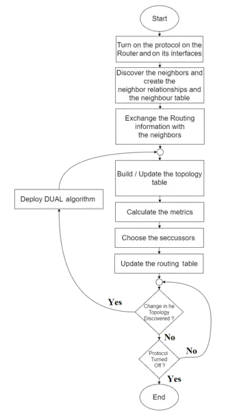Более ранний и практически не используемый ныне протокол IGRP был создан как альтернатива протоколу RIP (до того, как был разработан OSPF). После появления OSPF Cisco представила EIGRP — переработанный и улучшенный вариант IGRP, свободный от основного недостатка дистанционно-векторных протоколов — особых ситуаций с зацикливанием маршрутов — благодаря специальному алгоритму распространения информации об изменениях в топологии сети. EIGRP более прост в реализации и менее требователен к вычислительным ресурсам маршрутизатора, чем OSPF. Также EIGRP имеет более продвинутый алгоритм вычисления метрики DUAL (Diffusing Update ALgorithm), который может использовать 5 различных компонентов для расчета: