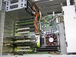 Корзина с разъёмами шин ISA и PCI внутри промышленного компьютера Siemens SIMATIC RACK PC 840 V2