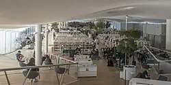 Почти все помещения библиотеки открыты для посетителей. Планирование библиотеки было основано на идее функционального зонирования всех трех этажей. Здание имеет активный первый этаж, тихий верхний этаж и более закрытый средний этаж для таких специальных занятий: работы, обучения и студий по интересам. На первом этаже здания библиотеки расположены стойки информации, кафе, многофункциональные залы, а также кинотеатр «Кино Регина». На втором этаже расположены читальные залы, комнаты для индивидуальных и групповых работ, студии, предназначенные для обучения и звукозаписи, а также ступени, на которых можно посидеть с книгой или просто отдохнуть. Также на втором этаже есть 3D-принтеры, аппараты для лазерной резки, термопресс, принтер для печати этикеток, также швейные машинки и оверлоки. Книги располагаются на третьем этаже.