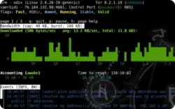 Tor (сокр. от англ. The Onion Router)[11] — свободное и открытое программное обеспечение для реализации второго (V2) и третьего (V3) поколения так называемой луковой маршрутизации[12]. Это система прокси-серверов, позволяющая устанавливать анонимное сетевое соединение, защищённое от прослушивания. Рассматривается как анонимная сеть виртуальных туннелей, предоставляющая передачу данных в зашифрованном виде[13]. Написана преимущественно на C[14].