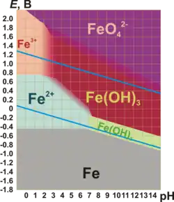 Fe←Fe3+ −0,04 В Fe←Fe2+ −0,44 В |