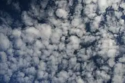 | Волнистые облака | Перисто-кучевые (Cirrocumulus, Cc) Высококучевые (Altocumulus, Ac) Слоисто-кучевые (Stratocumulus, Sc) |