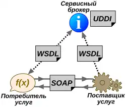 - UDDI: Универсальный интерфейс распознавания, описания и интеграции (Universal Discovery, Description and Integration). Каталог веб-служб и сведений о компаниях, предоставляющих веб-службы во всеобщее пользование или конкретным компаниям. Пока UDDI существуют, однако, только в небольших фирменных сетях и ещё не нашли широкого распространения в открытом интернете;