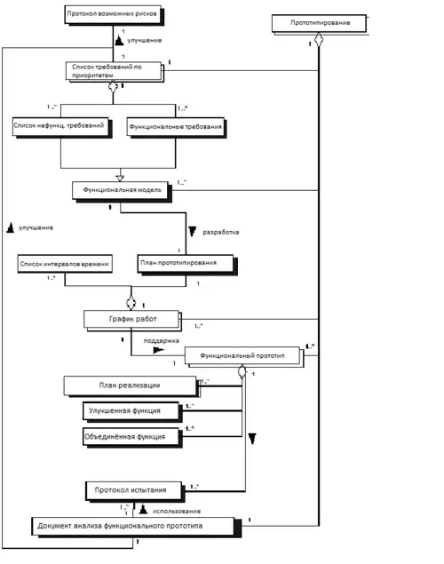 | Анализ прототипа | Собираются комментарии пользователей и документация. Они будут играть важную роль при разработке документа анализа прототипа. На основе этого документа будет проведено обновление списка требований и протокол возможных рисков, а также будет принято решение проводить или нет ещё одной итерации стадии создания функциональной модели. |
