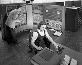 IBM 704 — первый массово выпускавшийся компьютер с аппаратной поддержкой вычислений с плавающей точкой, представленный фирмой IBM в 1954 году[1]. В руководстве по эксплуатации IBM 704[2] машина характеризуется следующим образом: