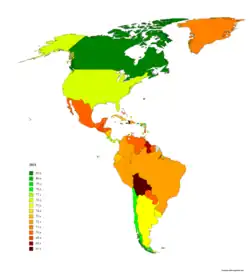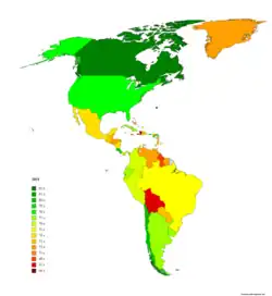 Также называется Новым Светом[3]. Обычно в этой части света выделяют Северную Америку (США, Канаду, Мексику и острова к востоку от них), Южную Америку (страны материка Южная Америка), Центральную Америку (страны североамериканского континента на юг от Мексики) и Карибский бассейн (государства и колонии на островах Карибского моря, раньше этот регион называли Вест-Индия)[4].