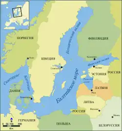Балтийское море глубоко вдаётся в сушу Европы, омывает берега России, Эстонии, Латвии, Литвы, Польши, Германии, Дании, Швеции и Финляндии[11].