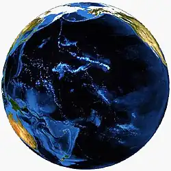 Ти́хий океа́н (устар. Великий океан[3][4]; англ. Pacific Ocean) — самый большой по площади и глубине океан на Земле. Расположен между материками Евразией и Австралией на западе, Северной и Южной Америкой на востоке, Антарктидой на юге.