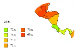 Ожидаемая при рождении продолжительность жизни в 2023 году, согласно оценке Группы Всемирного банка[2][3][4].