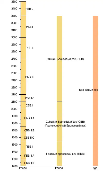 Древний ближневосточный Бронзовый век может быть разделён следующим образом:
