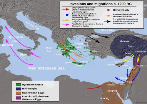 Поздний бронзовый век характеризован конкуренцией мощных государств региона и их вассалов (Древний Египет, Ассирия, Вавилония, хетты, митаннийцы). Обширные контакты были установлены с эгейской цивилизацией (ахейцы), в которой медь играла немаловажную роль. Бронзовый век на Ближнем Востоке завершился историческим явлением, которое в среде профессионалов принято называть бронзовый коллапс. Это явление отразилось на всём Восточном Средиземноморье и Ближнем Востоке.