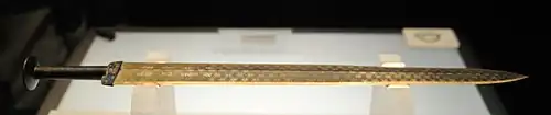 Железо обнаруживается на территории Китая с того исторического периода, который ассоциируется с династией Чжоу, однако масштаб его использования минимален. Китайская литература, датируемая шестым веком до н. э., свидетельствует о наличии знаний по выплавке железа, но, тем не менее, бронза и после этого момента продолжает занимать существенное место в результатах археологических и исторических изысканий[24]. Историк Уильям Уайт, к примеру, утверждал, что бронза не была вытеснена железом вплоть до завершения династии Чжоу (256 год до н. э.), и бронзовые изделия составляют большинство среди металлических сосудов до самого начала династии Хань (221 год до н. э.)[25].