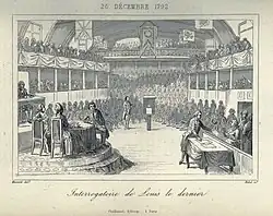 Судебный процесс начался 11 декабря. Людовик XVI был классифицирован как враг и «узурпатор», чуждый телу нации. Голосование началось 15 января 1793 года. Голосование за виновность короля было единогласным. О результате голосования председатель Конвента, Верньо, объявил: «От имени французского народа Национальный Конвент объявил Людовика Капета виновным в злоумышлении против свободы нации и общей безопасности государства»[67].