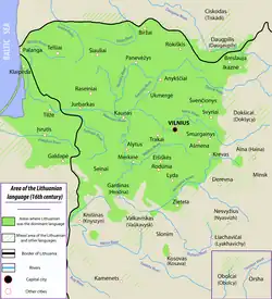 Этническое формирование литовцев происходило на основе балтских племен. К группе Восточных балтов, которые занимали территорию современных Восточной Литвы, Южной и Восточной Латвии, относятся литовцы, аукштайты, жемайты, латгалы, земгалы и селы. К группе Западных балтов — ятвяги, курши и скальвы, жившие на территории современной Западной Литвы. Литовский и латышский языки выделились из балтского праязыка в VI—VII веках[19][20].