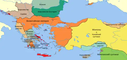 Владения Византии в южной Италии были полностью потеряны к 1071 году под натиском норманнов, но основная опасность надвигалась с востока — в 1071 году Роман IV Диоген потерпел поражение от сельджуков под Манцикертом (Армения), и от этого поражения Византия так и не смогла оправиться. В 1054 году произошёл официальный разрыв между христианскими церквями, что усугубило до предела натянутые отношения. За следующие два десятилетия турки заняли всю Анатолию; империя не могла создать достаточно большую армию, чтобы остановить их. В 1080 году на отколовшейся от Византийской империи Киликии было образовано независимое Киликийское армянское государство[16]. В отчаянии император Алексей I Комнин (1081—1118) в 1095 году попросил папу римского оказать военную помощь. Отношения с Западом и предопределили события 1204 года (захват крестоносцами Константинополя и распад страны), а восстания феодалов подрывали последние силы страны.