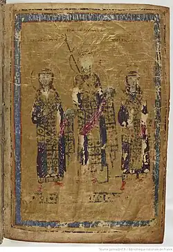 С первой половины IX века заметное значение для Византии начали также приобретать взаимоотношения с зарождающимся на севере от империи государством русов. Уже в 830-е годы исторически зафиксированы первые контакты византийцев с норманнами-«свеонами», которые называли себя (возможно это произошло и с подачи самих византийцев) «народом рос». Были в этот период и нападения некоей «руси» на византийские земли, точная дата которых не установлена. В 860 году русы, воспользовавшись отсутствием в городе императора с армией, попытались напасть и на сам Константинополь, но были остановлены у городских стен[14]. Молодой император Михаил III и его регент Варда тотчас же (860—862 годы) направили дипломата и богослова Константина «Философа» и его брата — монаха Мефодия — с миссионерскими целями ко двору хазарского каган-бека, так как Хазарский каганат служил в то время важным буфером между Византией и варягами-русами. По пути к кагану братья обнаружили в Крыму некие «руськие письмена» (наиболее вероятно, что это была Готская Библия, оставшаяся от периода христианизации крымских готов), которые имевший талант к языкам Константин «Философ» тщательно изучил.