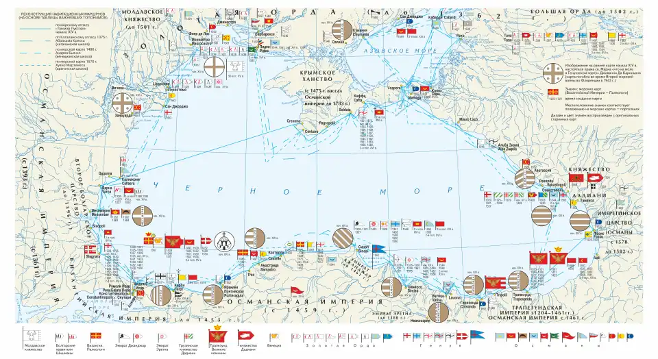 - Фоменко И. К. Карты-реконструкции // Образ мира на старинных портоланах. Причерноморье. Конец XIII—XVII в / Рец. А. Л. Пономарёв, Р. М. Шукуров. — 2-е, научное издание, исправленное и дополненное. — М.: Издательство «Индрик», 2011. — С. 394—395. — 424 с. — ISBN 978-5-91674-145-2.