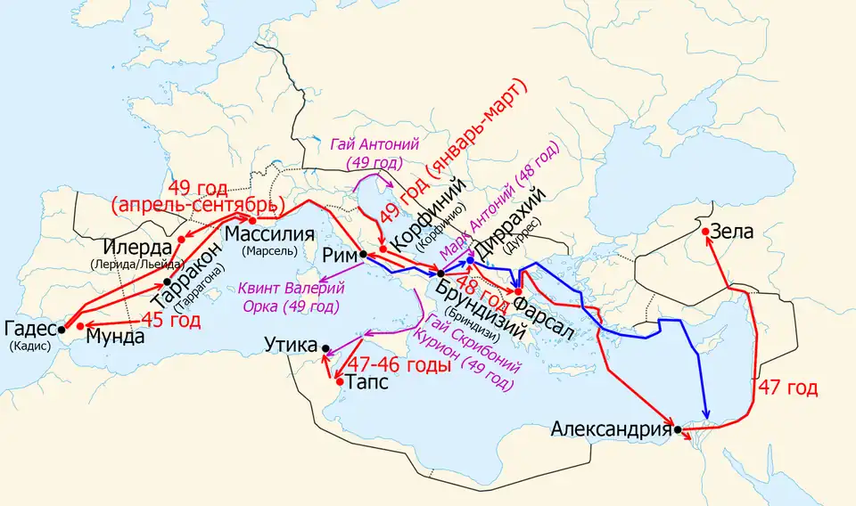 - ↑ Голдсуорси А. Юлий Цезарь: полководец, император, легенда. — М.: Эксмо, 2007. — С. 177—178.