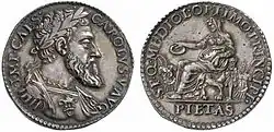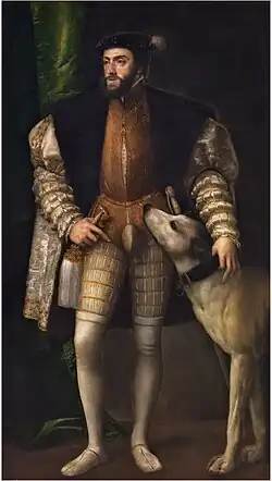 Карл V Габсбург (лат. Carolus V, нидерл. Karel V, нем. Karl V., фр. Charles Quint; 24 февраля 1500[1][2][…], Гент, Габсбургские Нидерланды[2] — 21 сентября 1558[1][2][…], Юсте, Королевство Кастилия и Леон[2]) — король Испании (Кастилии и Арагона) под именем Карлос I (исп. Carlos I) с 23 января 1516 года, король Германии (римский король) с 28 июня 1519 (коронован в Ахене 23 октября 1520 года) по 1556 год, император Священной Римской империи с 1519 года (коронован 24 февраля 1530 года в Болонье папой римским Климентом VII). Крупнейший государственный деятель Европы первой половины XVI века, внёсший наибольший вклад в историю среди правителей того времени[6][7]. Карл V — последний император, официально коронованный римским папой, он же — последний император, отпраздновавший в Риме триумф. Правитель первой в мире трансатлантической империи[8].