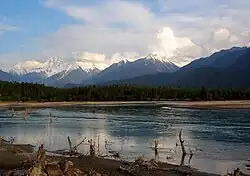 Высочайшей (8848,86 м[28]) точкой Китая является вершина горы Джомолунгмы, находящейся в Гималаях, на границе с Непалом[29]. В список самых высоких горных систем Китая, помимо Гималаев, входят: Каракорум, Куньлунь, Памир, Сино-Тибетские горы и Тянь-Шань. Минимальная высота суши, составляющая −155 м, зафиксирована в Турфанской впадине[29].