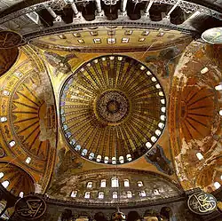 Во времена правления императора Юстиниана в 527—565 годах для Константинополя наступает «золотой век». Через пять лет его правления (в 532 году) в городе вспыхнуло крупнейшее восстание «Ника» — город был существенно разрушен, сгорел собор Святой Софии. После жестокого подавления бунта Юстиниан заново отстраивает столицу, привлекая лучших архитекторов своего времени. Строятся новые здания, храмы и дворцы, а центральные улицы нового города украшаются колоннадами. Особое место занимает строительство собора Святой Софии, который стал самым большим храмом в христианском мире и оставался таковым на протяжении более тысячи лет — вплоть до постройки Собора Святого Петра в Риме.