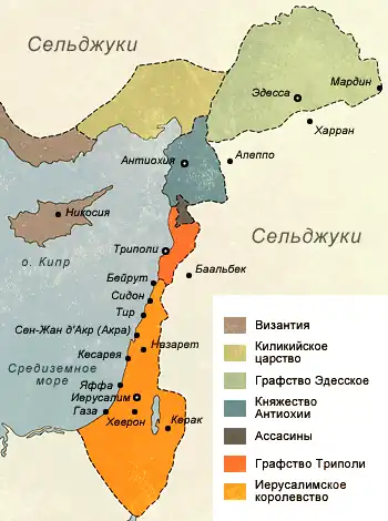 - Графство Триполи — последнее из государств, основанных в ходе Первого крестового похода. Было основано в 1105 году графом Тулузы Раймундом IV. Графство просуществовало до 1289 года.