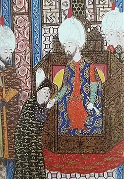 Считается, что с 1580-х[39] Крымское ханство официально стало вассалом Османской Порты и сохранилось в этом качестве до Кучук-Кайнарджийского мира 1774 года. В 1584 году крымский хан Мехмед II Герай был низложен османским султаном за неподчинение, с этого момента утверждение и смещение ханов обычно осуществлялось по воле Порты[40].