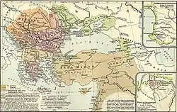 После распада Конийского султаната сельджуков (предков османов) в 1300-х годах Анатолия была разделена на несколько независимых бейликов. К 1300 году ослабленная Византийская империя потеряла бо́льшую часть своих земель в Анатолии, составивших 10 бейликов. Один из бейликов находился под управлением Османа I (1258[16]—1326), сына Эртогрула, со столицей в Эскишехире, в западной Анатолии. Осман I расширил границы своего бейлика, начав медленно продвигаться в пределы византийской Вифинии на северо-западе Анатолии. В тот период была создана османская система управления, организационно изменявшаяся в течение всего существования империи, что было жизненно важно для быстрого расширения империи. Правительство использовало социально-политическую систему, при которой религиозные и этнические меньшинства обладали определённой степенью автономии от центральной власти и норм господствующей религии. Такая относительная религиозная терпимость привела к малому сопротивлению во время захвата турками новых территорий[17]. Осман I поддерживал всех тех, кто способствовал достижению его цели.