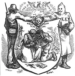 «Геноцид белой расы», «геноцид белых», «вымирание белых»[128] или «замещение белых»[129][130][131] представляет собой теорию заговора, разделяемую сторонниками превосходства «белой расы»[132][133][134][135], согласно которой существует заговор с целью уничтожения белых. Утверждается, что в странах с белым большинством[132] тайные силы поощряют смешение рас[136], массовую иммиграцию небелых, расовую интеграцию, низкий уровень рождаемости, аборты, государственную конфискацию земли у белых, организованное насилие[137] и элиминации с целью вызвать вымирание белых посредством принудительной ассимиляции[137], массовой иммиграции или прямого геноцида[138][139][140][141]. В организации «геноцида белых» сторонники теории заговора часто обвиняют евреев[132][135].
