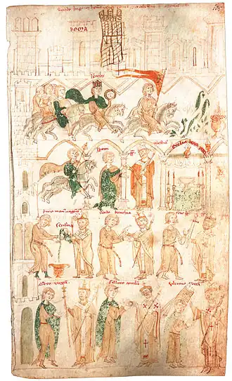 Императорский титул, принятый Оттоном Великим, ставил его на ступень выше всех европейских монархов и, по крайней мере, вровень с папой римским. Особое значение имел сакральный характер этого титула, который позволял Оттону I и его преемникам полностью контролировать церковные институты в своих владениях[20]. Выборы епископов и аббатов осуществлялись по указанию императора, и ещё до рукоположения церковные иерархи приносили ему клятву верности и ленную присягу. Церковь была включена в светскую структуру империи и превратилась в одну из главных опор императорской власти и единства страны. Это отчётливо проявилось уже в период правления Оттона II Рыжего (973—983) и во время несовершеннолетия Оттона III (983—1002), когда благодаря поддержке высшего духовенства Германии императорам удалось подавить несколько крупных восстаний правителей племенных герцогств. Сам папский престол при Оттонах оказался под доминирующим влиянием императоров, зачастую единолично решавших вопросы назначения и смещения римских пап. В этот период светские и духовные дела не были чётко отделены друг от друга, и император, как «наместник Бога на земле», осуществлял власть над обеими сферами. Интеграция церкви в государственную структуру достигла своего апогея при Конраде II (1024—1039) и Генрихе III (1039—1056), когда сформировалась классическая имперская церковная система (нем. Reichskirchensystem).