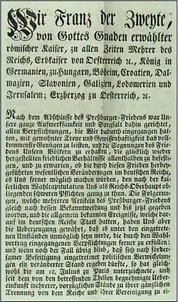 Гимн: Официального нет Gott erhalte Franz den Kaiser (1797—1806) с нем. — «Боже, храни императора Франца» |