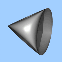 Плоскость z = 0 рассекает самопересекающийся диск на пару дисков, представляющих зеркальные отражения друг друга. Диски имеют центры в начале координат.