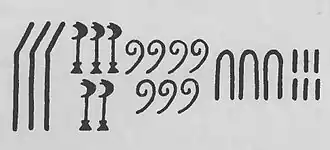 В любой цивилизации древнейшим из математических обозначений является нумерация (запись чисел). По способу образования чисел из базовых знаков (цифр) древние системы нумерации делятся на три типа[5]