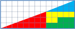 Площади закрашенных фигур, разумеется, равны между собой (32 клетки), однако, то, что визуально наблюдается как треугольники 13×5, на самом деле таковым не является, и имеет разные площади (S13×5 = 32,5 клетки). То есть ошибка, замаскированная в условии задачи, состоит в том, что начальная фигура поименована треугольником (на самом деле это — вогнутый 4-угольник). Это отчётливо заметно на рисунках 2 и 3 — «гипотенузы» верхней и нижней фигур проходят через разные точки: (8,3) вверху и (5,2) — внизу. Секрет в свойствах синего и красного треугольников. Это легко проверить вычислениями.