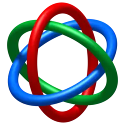 Кольца Борромео[2] — зацепление, состоящее из трёх топологических окружностей, которые сцеплены и образуют брунново зацепление (то есть удаление любого кольца приведёт к разъединению двух оставшихся колец). Другими словами, никакие два из трёх колец не сцеплены, как в зацеплении Хопфа, тем не менее, все вместе они сцеплены.