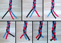 Если рассечь кольца Борромео, получим одну итерацию обычного плетения косы. Обратно, если связать концы (одной итерации) обычной косы, получим кольца Борромео. Удаление одного кольца освобождает оставшихся два, и удаление одной ленты из косы освобождает две другие — они являются простейшими брунновым зацеплением и брунновой косой соответственно.